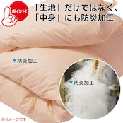 側生地はもちろん、中身の羽毛にも防炎加工を施しています。