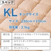 混合率はホワイトダックダウン85%・フェザー15%です。