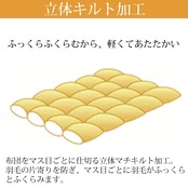 羽毛の偏りを防ぎ、マス目ごとに羽毛がふっくらとふくらみ、軽くて暖かい羽毛布団ができあがります。