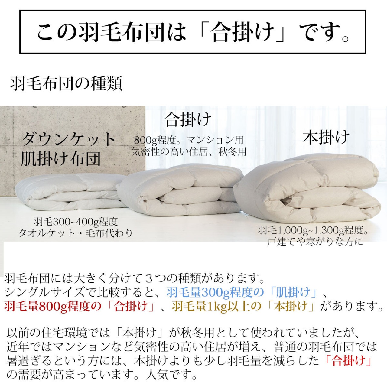 【ダブルサイズ 190×210cm】ゴア 合掛け布団 ゴア羽毛布団 合掛け ダブルサイズ ダブルロング 日本製 マンション ゴア羽毛 きれい 蒸れにくい 軽い