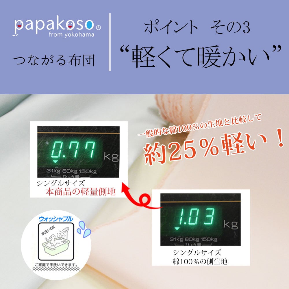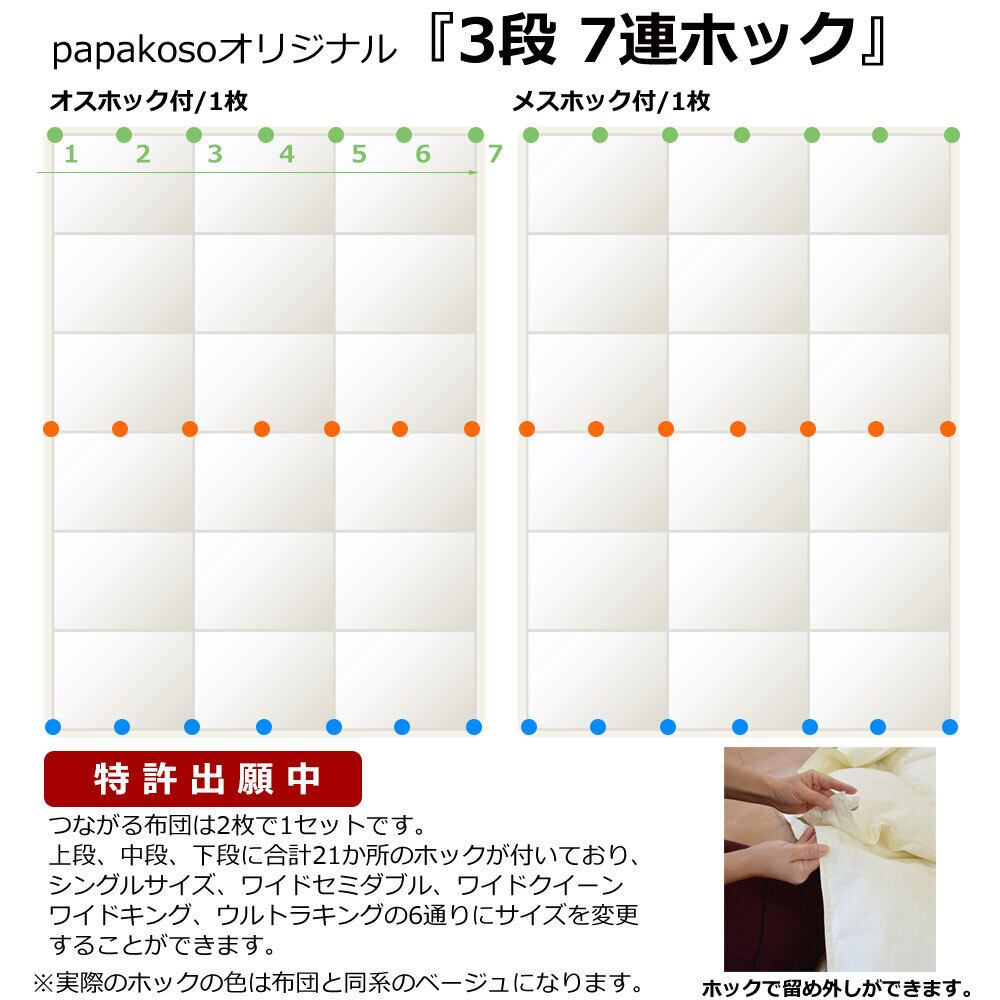 つながる布団 羽毛布団 家族用 組み合わせ 肌掛け 繋がる 繋げる 羽毛 シングル セミダブル ダブル クイーン キング 掛け布団 ダウンケット papakoso パパコソ 日本製 ポーランド産 ダウン 軽量生地 エクセルゴールドラベル