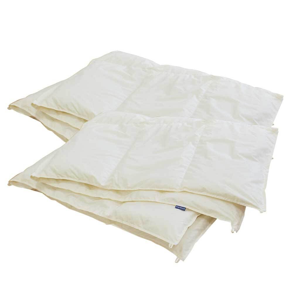 一般的な羽毛布団は4マス×5マスのキルトが多いですが、つながる布団は3マス×6マスのpapakosoオリジナルキルト。中央列の羽毛料を増やすことで保温性を高め、両サイドをやや少なくすることで重ねてつなぎやすくなっています。
