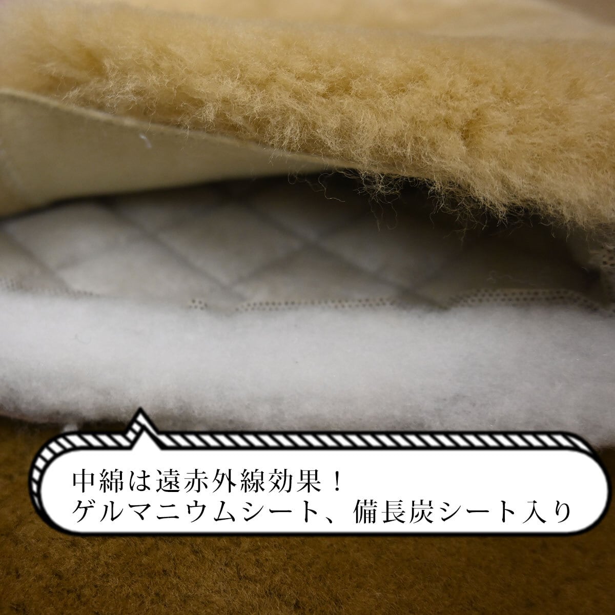 中わた:ポリエステル100%(備長炭シート・ゲルマニウムシート入り)