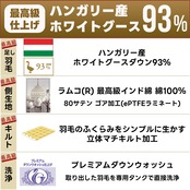 ・足し羽毛:ハンガリー産ホワイトグースダウン93%、S 300g
