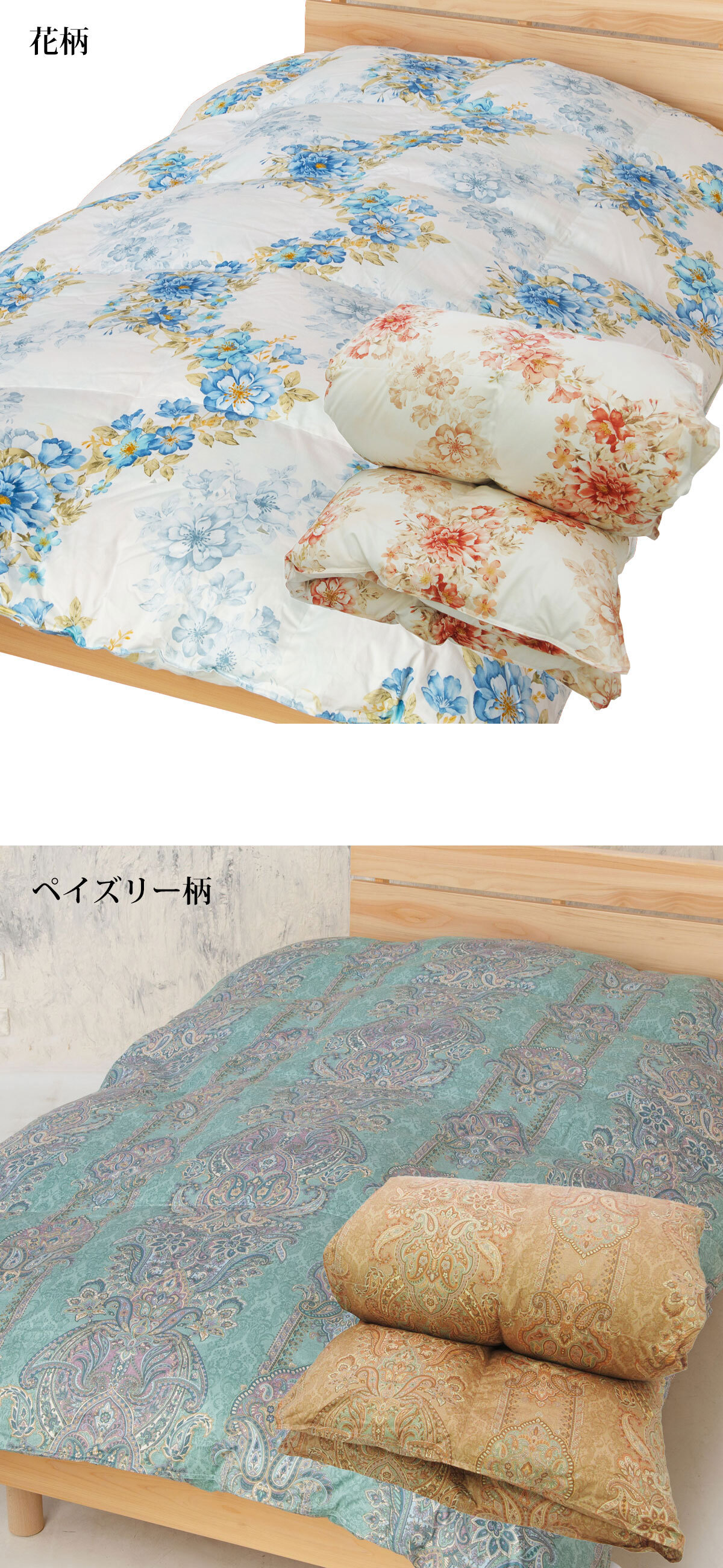・カラー:花柄/ブルー・ピンク、ペイズリー柄/グリーン・ベージュブラウン系