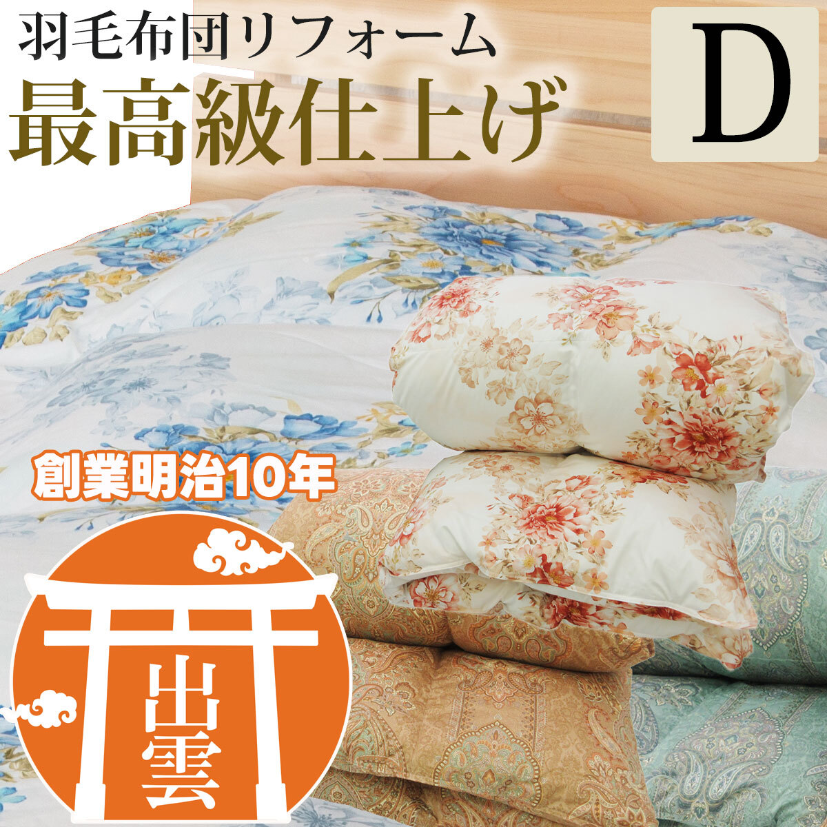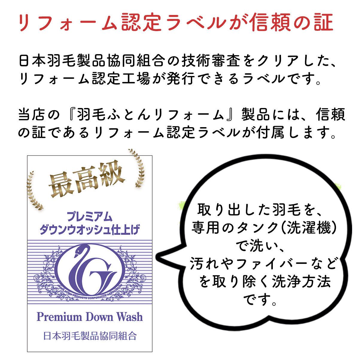 【羽毛布団リフォーム】最高級仕上げ ダブルサイズ 往復送料無料 羽毛布団 打ち直し リフレッシュ 立体キルト 羽毛ふとん クリーニング 足し羽毛 日本製【納期3週間前後】