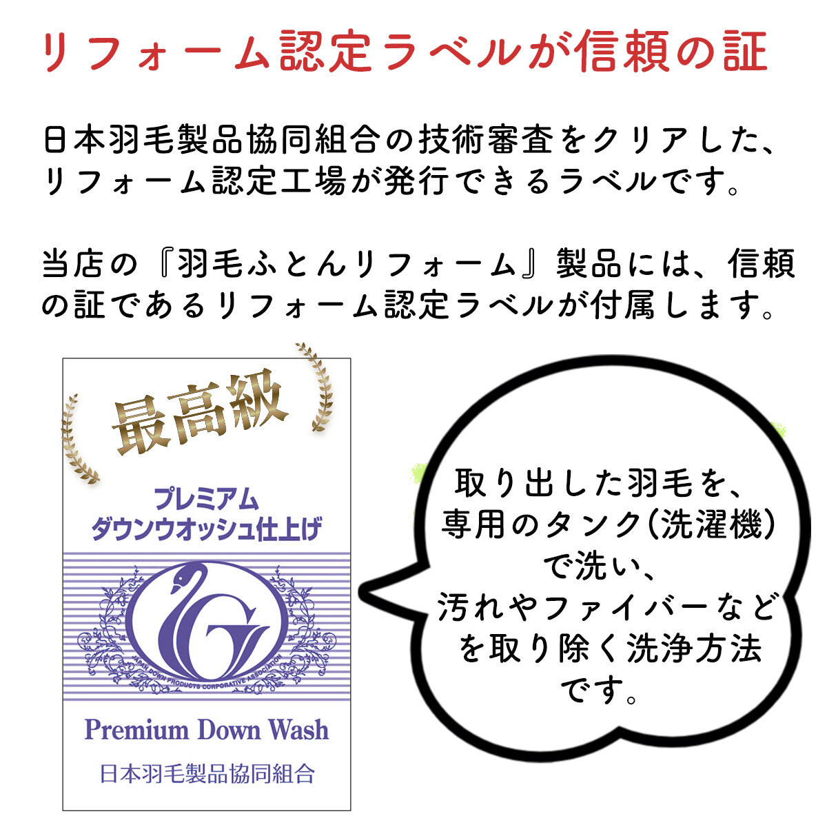 ・洗浄方法:プレミアムダウンウォッシュ