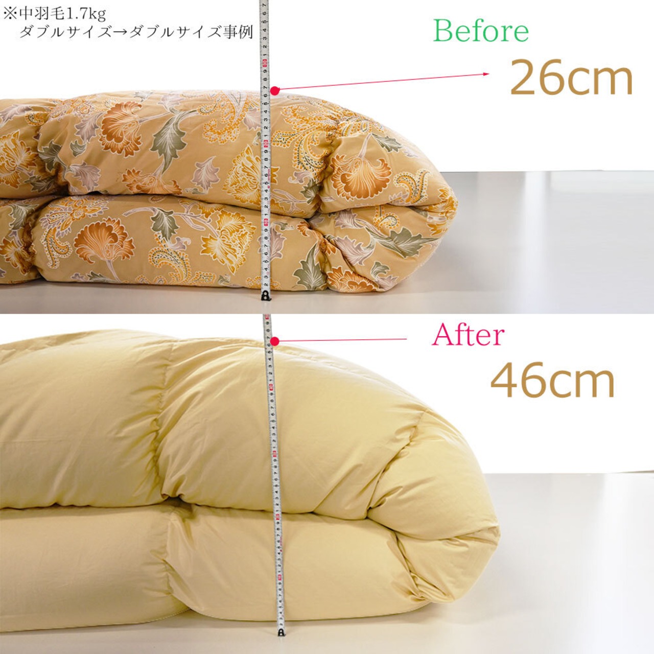 ふっかふかの羽毛布団に生まれ変わります。