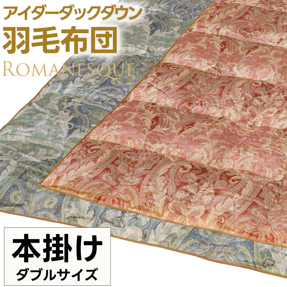 【ダブルサイズ 190×210cm】アイダーダックダウン 本掛け 羽毛布団 最高級 側生地 シルク100% 羽毛ふとん ダブル ロングサイズ 日本製